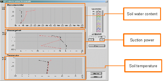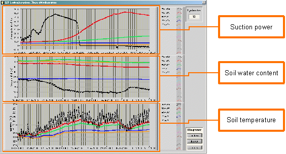- With the level diagram you can analyse up to 10 different lysimeter and their value progression in different depth over a free selected time period.
